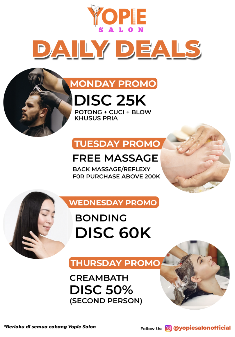 Untuk merayakan pembukaan ini, Yopie Salon menawarkan berbagai promo menarik dan diskon khusus bagi para pelanggan yang berkunjung selama bulan Februari. Jangan lewatkan kesempatan untuk mendapatkan perawatan terbaik dari Yopie Salon di lokasi terbaru kami.